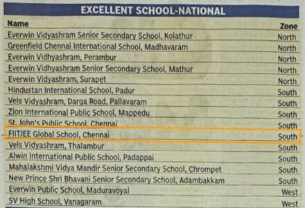 Chennai, Tamil Nadu (February 02, 2026) – FIITJEE Global School Chennai has been recognised as an Excellent School (National) in the South Zone at the Times Education Icons 2025-26, Chennai Schools, Pre Schools and Education Institutions Survey.