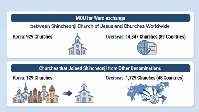 Now in its middle years of faith, Shincheonji Church of Jesus is expanding its engagement with the wider world. The church has been actively building relationships through Word exchange MOUs and sign change MOAs with pastoral communities at home and abroad. As of last year, cumulative Word exchange MOUs have reached 969 churches in South Korea and 14,347 churches across 89 countries overseas. Through sign change MOAs, 129 churches in South Korea and 1,729 churches across 48 countries have changed their church signs to Shincheonji Church of Jesus.