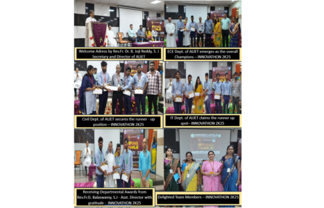 The event concluded with expressions of gratitude toward the management and faculty of ALIET for their untiring support. Rev. Fr. Dr. B. Joji Reddy, S.J., Secretary and Director, was especially commended for his active involvement in reviewing the projects and ensuring the smooth conduct of the event. His dynamic leadership and dedication to carry out this event to this magnitude is remarkable. Dr. O. Mahesh, Principal of ALIET, played a pivotal role in setting the judgment parameters and providing guidance throughout the event. Special thanks were extended to Rev. Fr. D. Balaswamy, S.J., Assistant Director for his continuous support guidance and the suggestion made. The HoDs and the project coordinators were appreciated for their exceptional efforts in preparing their students.